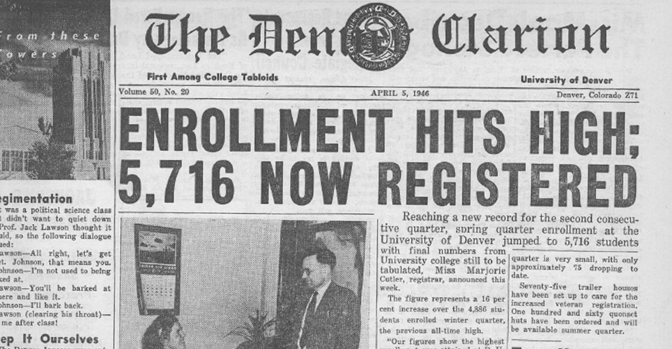Both DU and Denver rose out of the Colorado frontier and have developed in tandem ever since. We were founded in 1864 as the Colorado Seminary, only six years after the founding of Denver City in what was then the Colorado Territory. As Denver grew from a gold rush boom town with a population of around 3,000 into one of the largest and most cosmopolitan cities of the interior West, we too evolved from our roots as a Methodist seminary into a global intellectual center in a city on the rise. Our first female and African American graduates earned their degrees in 1886 and 1900, respectively.