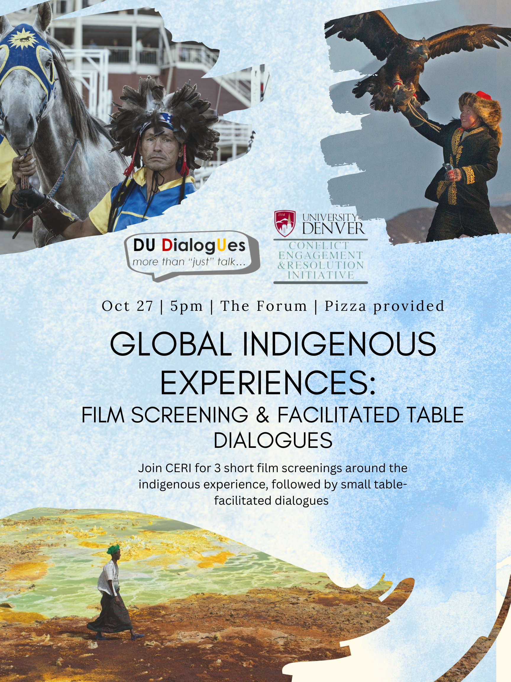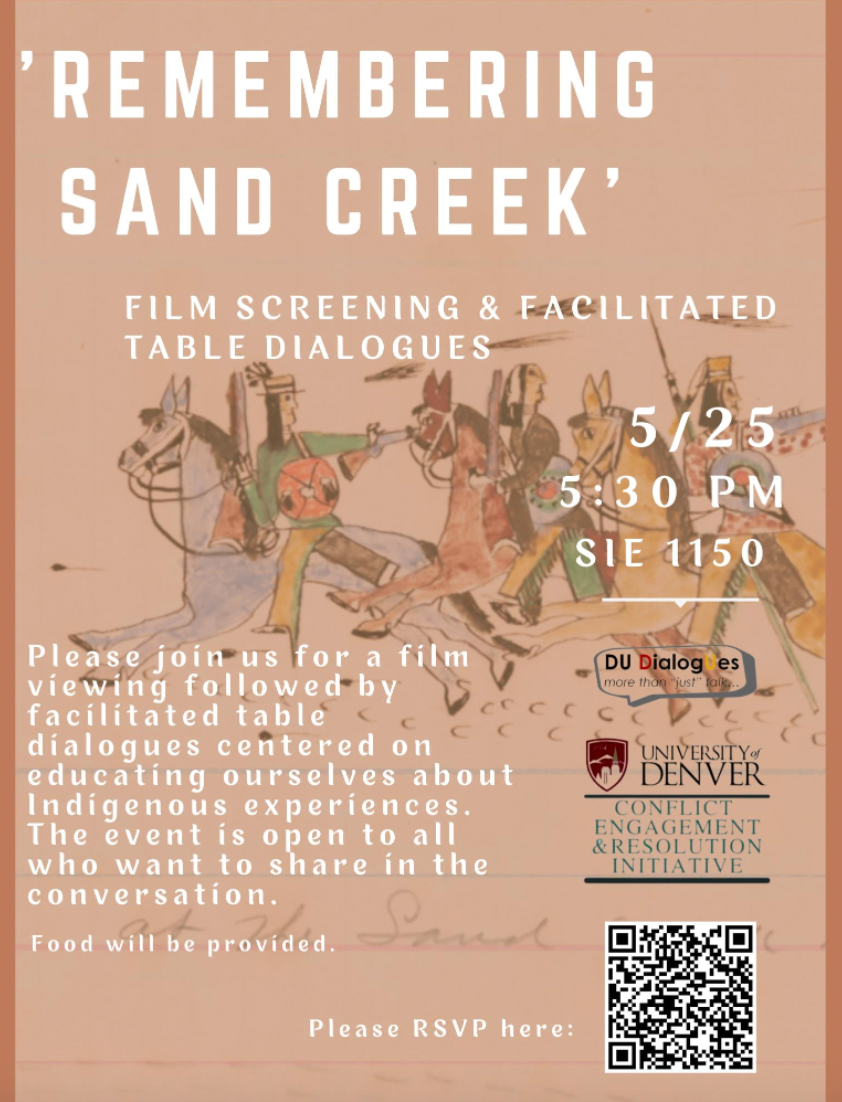 Film viewing centered on Indigenous experiences followed by facilitated table dialogue, in partnership with the Native Student Alliance, on May 25th (5:30pm - 9pm) in the Sie Complex Room 1150 on DU's campus. Open to DU community