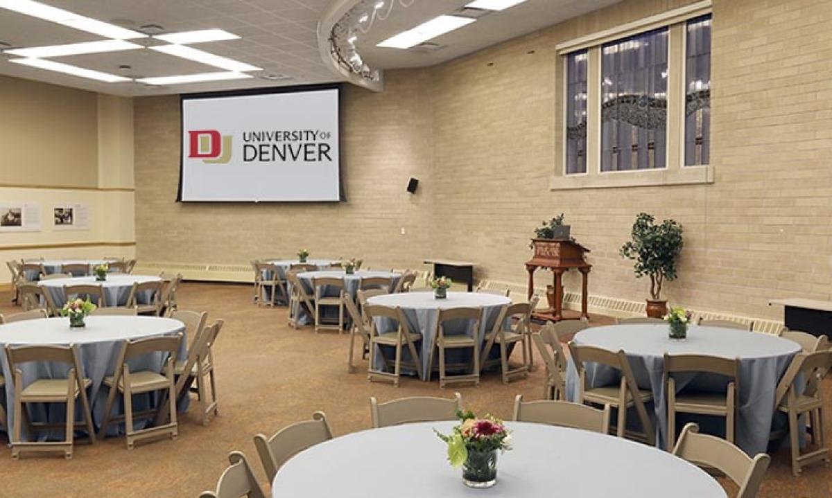 Located in the heart of campus, the newly renovated Community Commons has the best views on campus. This highly desirable, fourth-story space features beautiful views of the Colorado mountains and DU campus, state-of-the-art technology, and access to a spacious patio. Enjoy the wonderful food from the dining hall or an afternoon coffee break at the Starbucks in the building.