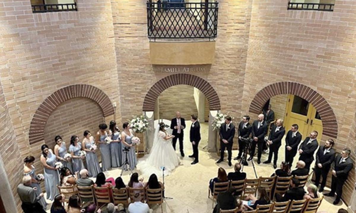 The Hamill Atrium is an elegant venue with high ceilings and a built-in bar, perfect for cocktail receptions, ceremonies, and a registration area. This versatile space exudes understated elegance, creating a perfect backdrop for your event. Cherish the ambiance as you gather with loved ones, making memories in a setting that effortlessly combines sophistication with warmth.