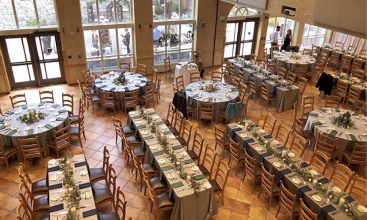 The KMC Sunset Deck at the Dining Hall offers breathtaking views, perfect for relaxation and gatherings. This spacious outdoor area can accommodate groups of up to 75 people, making it ideal for events, celebrations, or simply enjoying the natural beauty of the surroundings. Whether you're hosting a meal, a meeting, or a special occasion, the Sunset Deck provides a memorable setting that enhances any experience at the Kennedy Mountain Campus.