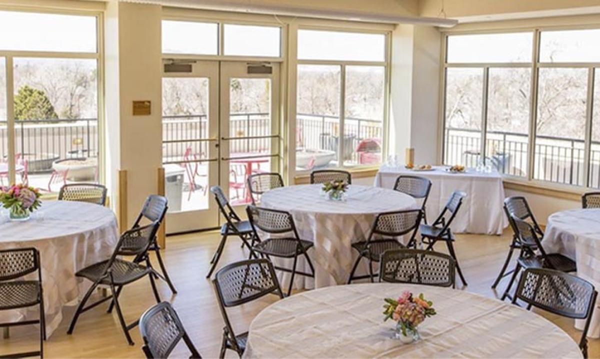 The Garden Room is an ideal spot for any special occasion from a lunch and learn to an awards ceremony or reception. The intimate room offers large window views of a private garden patio. This special event space is located in the Chambers Center, home to the Colorado Women's College.