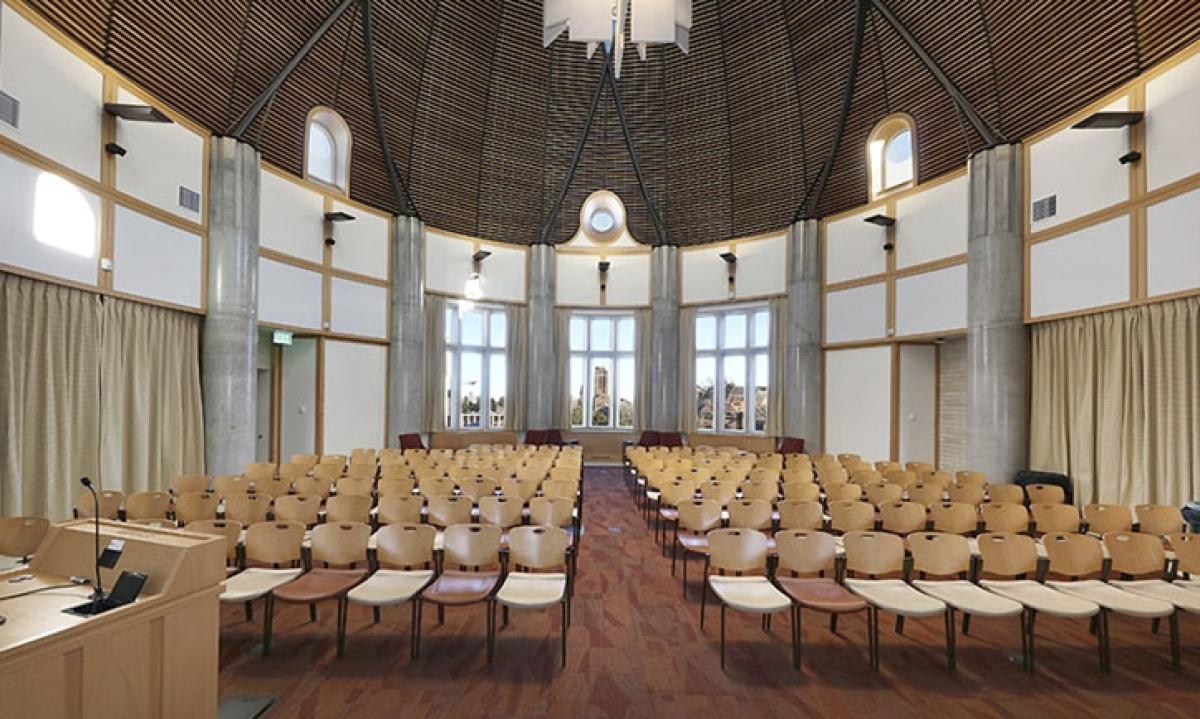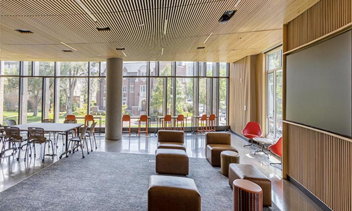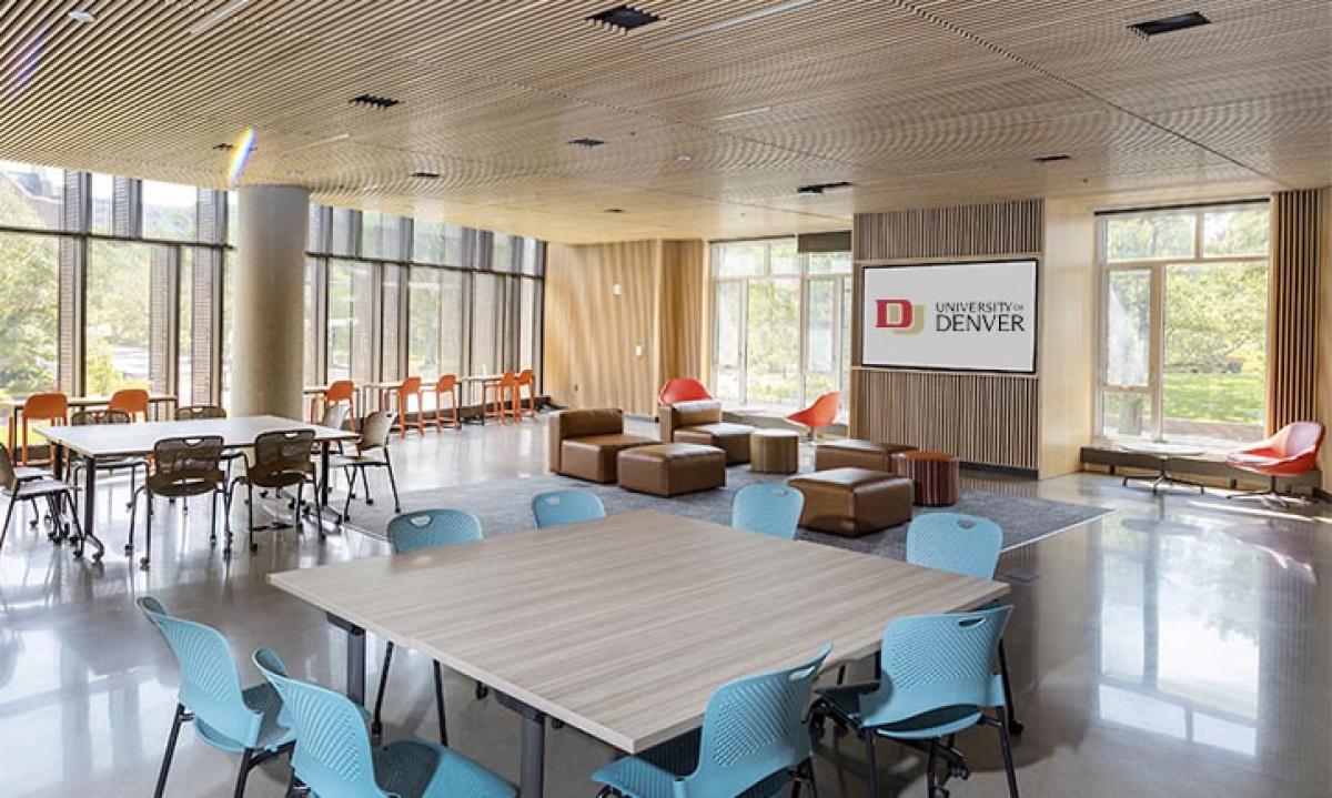 This event space is the crown jewel of the Daniel Felix Ritchie School of Engineering and Computer Science. Sitting at the very top of the building, this rotunda-shaped flexible space offers natural lighting and a quaint patio with city and mountain views on the south side of campus.