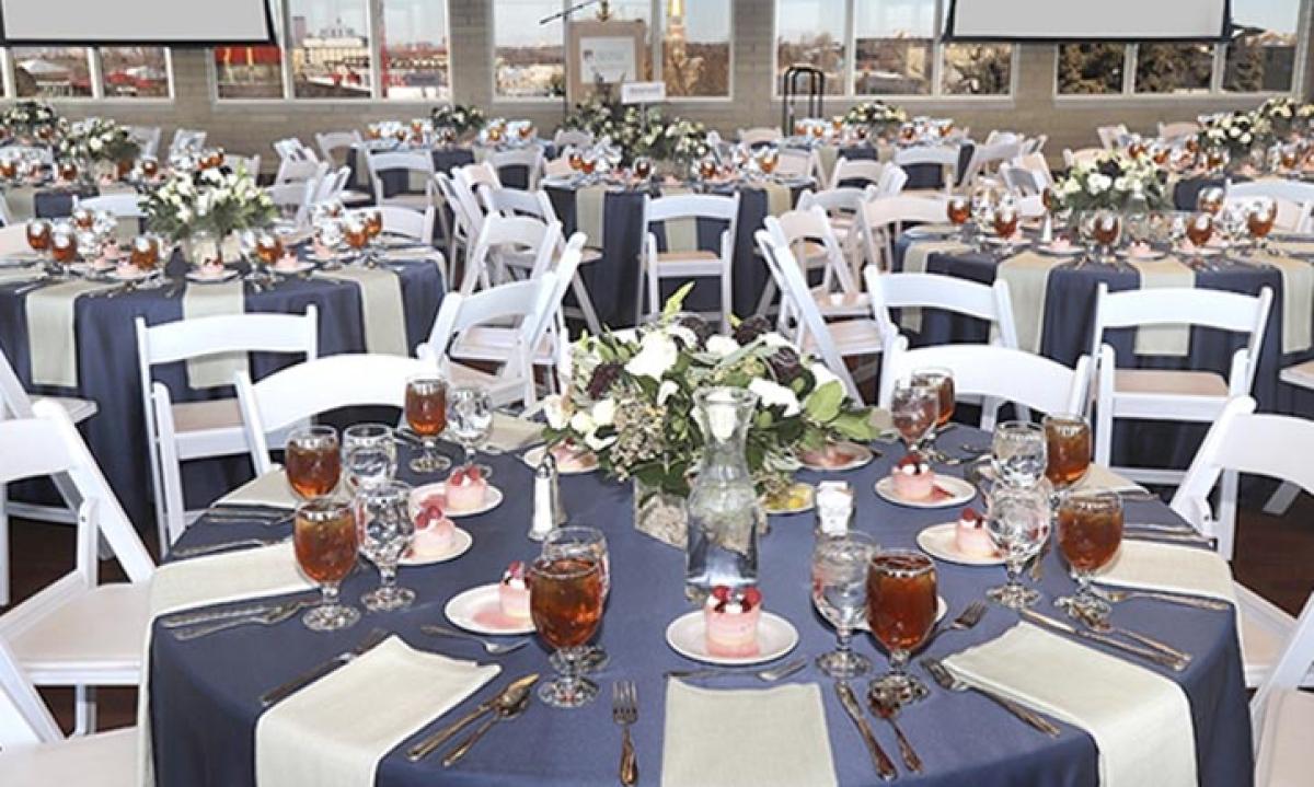 This venue is incredibly versatile with an open space having the option to draw the curtains to make things a little more private. It can be arranged to accommodate rounds, classroom style, theater style, or an open cocktail reception.