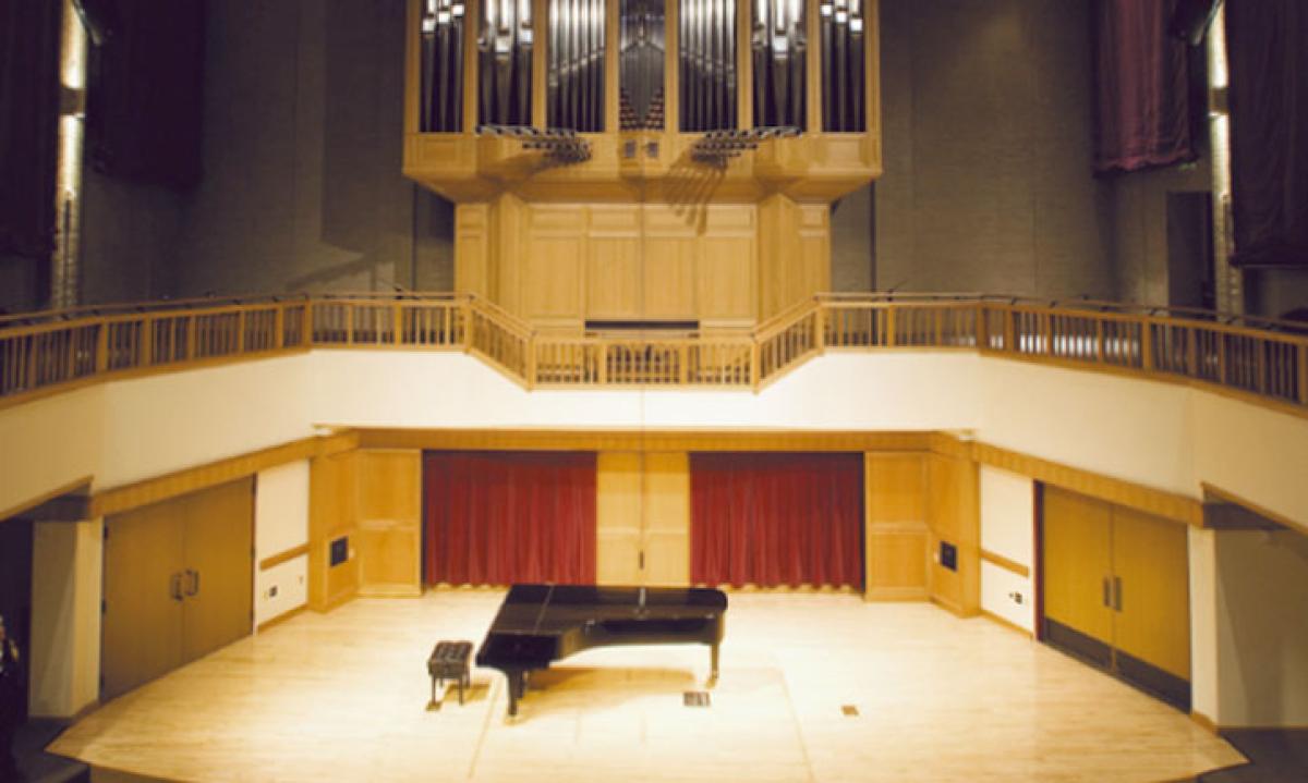 The Frederic C. Hamilton Family Recital Hall is the home for many of the recital performances by faculty and students of the Lamont School of Music. Chamber music, solo recitals, piano concerts, organ concerts, speakers, and even theatrical performances are all at home in this beautiful space. All eyes are drawn to the William K. Coors tracker action organ, designed and built by the Karl Schuke Berliner Orgelbauwerkstatt in Berlin, Germany.