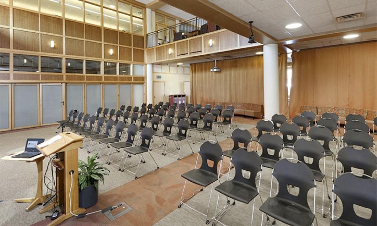 Located in the heart of campus, the newly renovated Community Commons offers unique event spaces ideal for just about any occasion. This mid-size room is great for banquets or theater-style events with newly updated video and audio equipment.