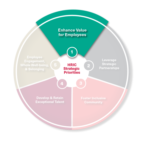 - Integrate wellbeing goals into HRIC to bring wellness to the forefront of the discussion within our community