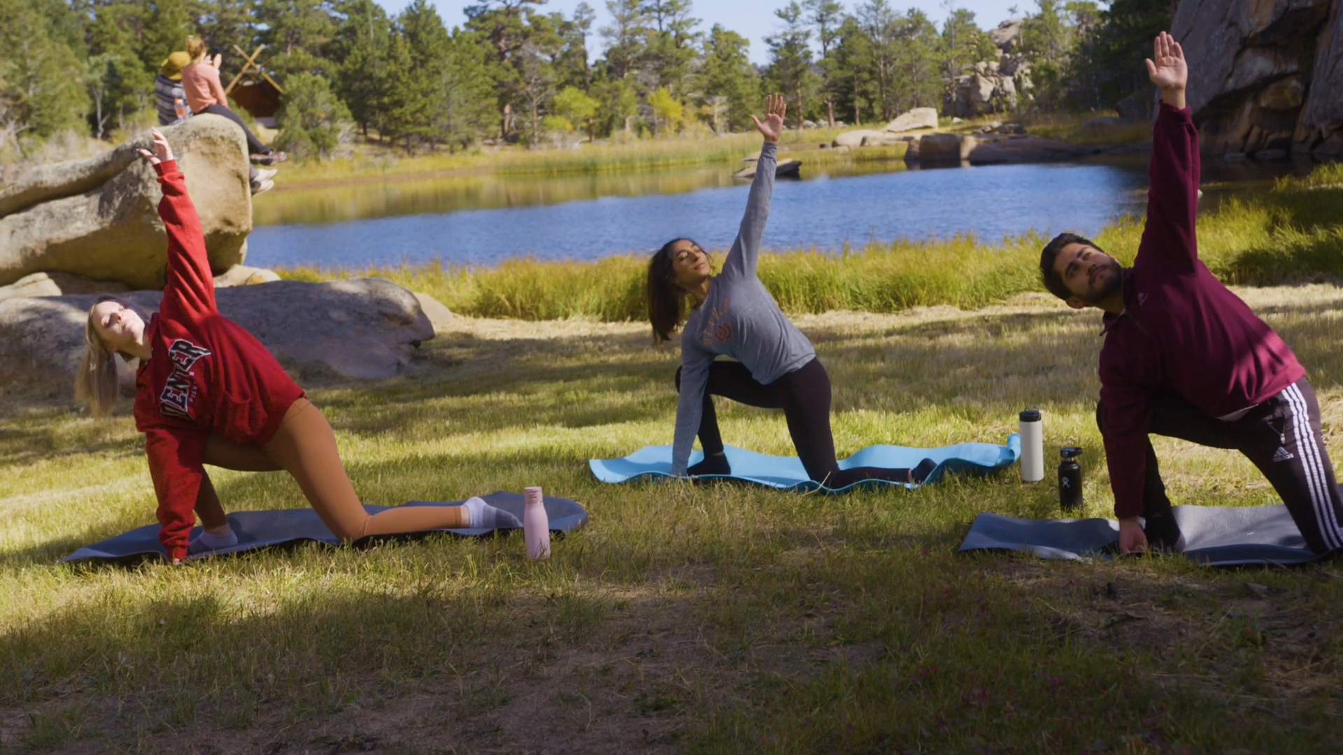 Find your flow in the sunshine by Cliff Lake or with an instructor in the Bucksbaum Outdoor Gateway.