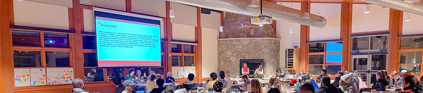 The John and Jacolyn Bucksbaum Family Outdoor Gateway is an extraordinary event venue, located approximately one and a half miles inside the James C. Kennedy Mountain Campus. It is tucked away in high country at 7,900 feet in elevation. The Bucksbaum Outdoor Gateway offers multiple event configurations and includes the main hall and stage, outdoor amphitheater, two learning studios, one arts studio, one conference room, and an indoor rock wall. Enjoy the seclusion of the surrounding wilderness or utilize the James C. Kennedy Mountain Campus technology capabilities to connect with friends, family, and colleagues across the globe.