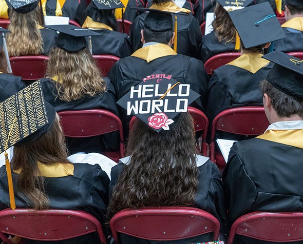 “You have, since your very first day on campus — whether you are an undergraduate, a master’s or a PhD [student] — accomplished a great deal. But I do think we have to begin with a moment of gratitude, because gratitude accompanies us on our journey,” Chancellor Rebecca Chopp told the graduating students before asking them to turn around and thank their families.
