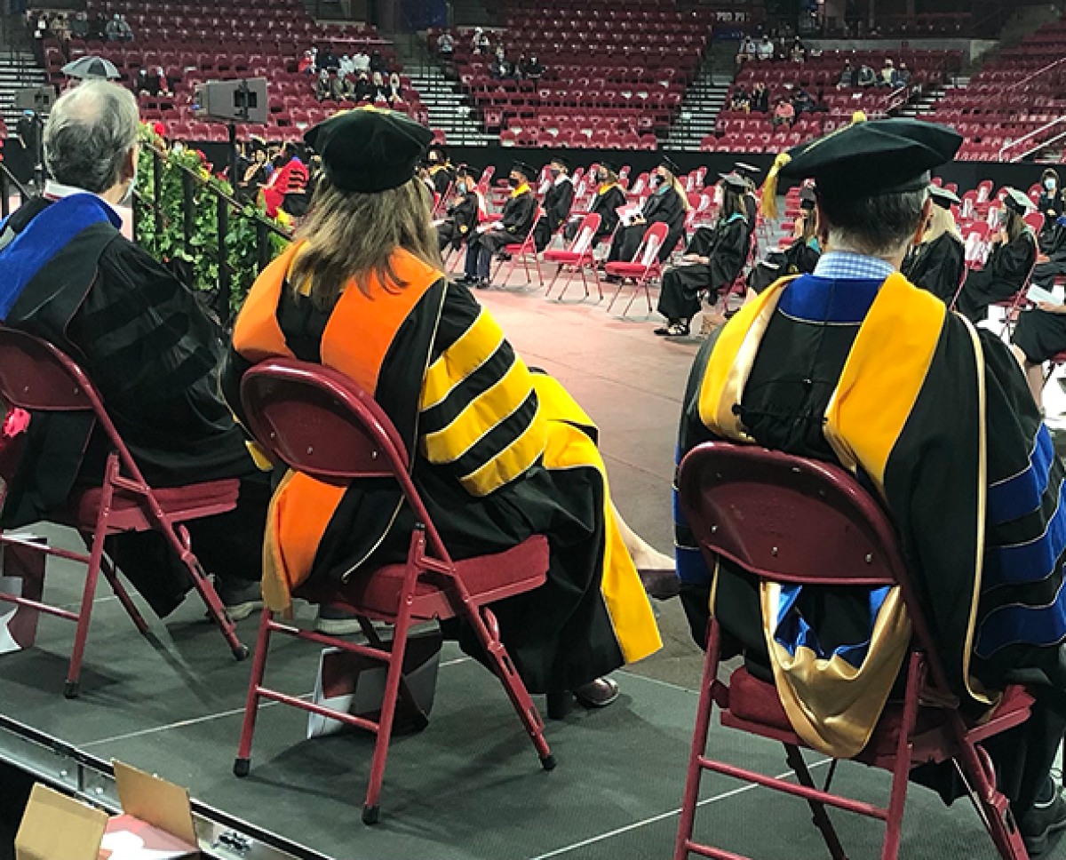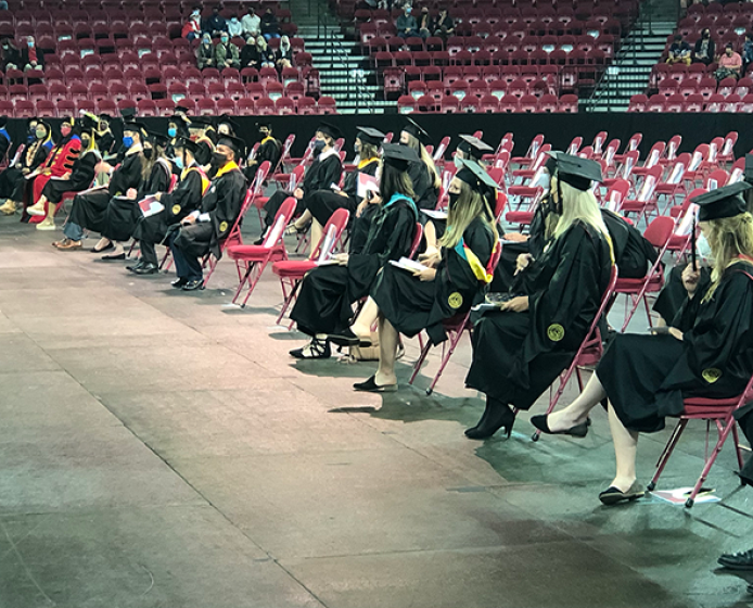 “It took patience this past year as we waited out a historic pandemic in order to have this important ceremony to celebrate your accomplishments,” Chancellor Jeremy Haefner told the assembled graduates and their families.