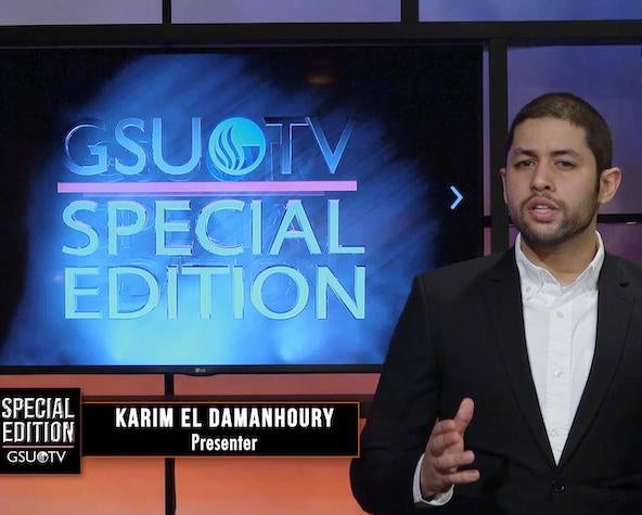 But El Damanhoury immediately got involved with the local PBS station when he got to Athens, Ohio, and discovered how local news works in the U.S. It was a dramatic revelation, given that local news programs didn’t exist in Egypt’s rural towns. That experience helped fuel his long-term dream of working at CNN, which led him to Georgia after he completed his master’s degree. There, he earned his PhD from Georgia State University.