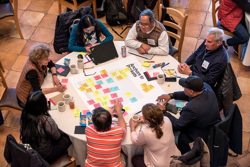 Interdisciplinary groups worked together to brainstorm achievable ways to push AI forward on campus. (Photo: Travis Bartlett)