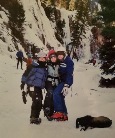 Brea Galvin poses for a photo while ice climbing on a 2002 Alpine Club trip to Ouray.