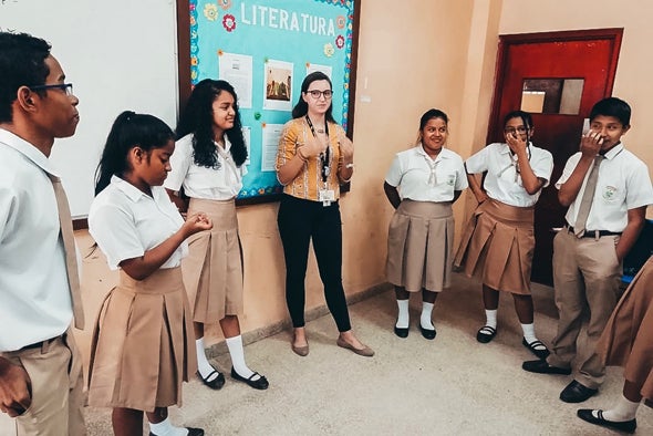 As a Peace Corps volunteer, Elena Kalahar helped students in a Panama school learn English and develop appreciation for its expression in literature.