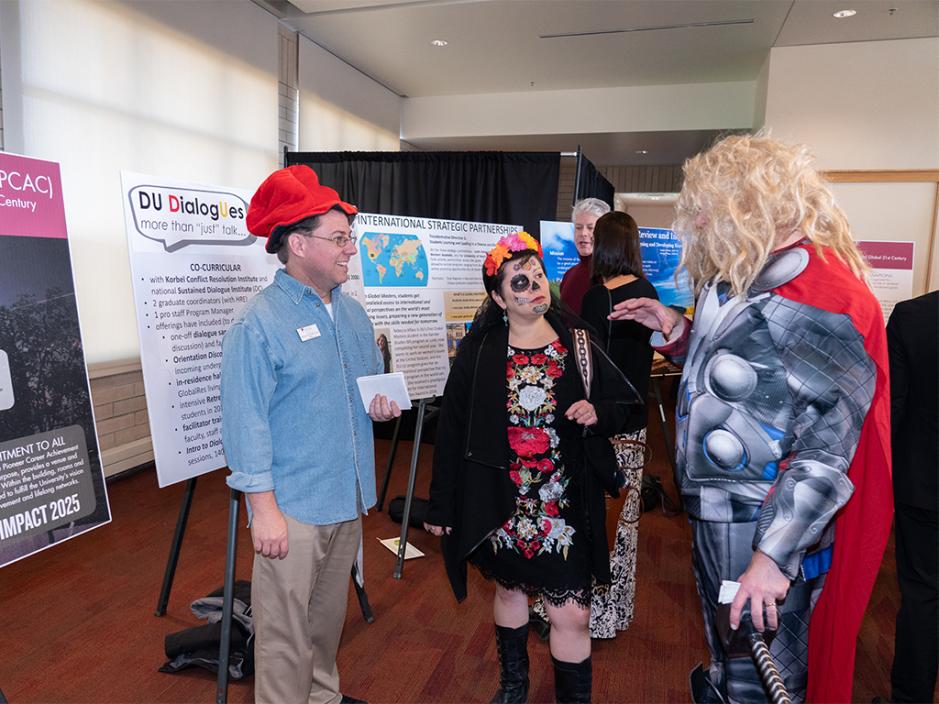 On Wednesday, Oct. 31, DU faculty, staff and students gathered in the Sie Complex to celebrate and learn about the progress made in the last three years on DU IMPACT 2025, the University’s strategic plan. Members from several of the plan’s implementation clusters presented their work on different initiatives at poster stations set up around the room.