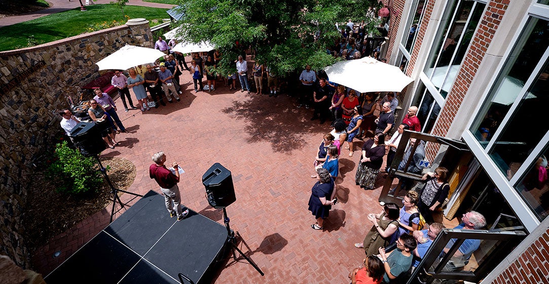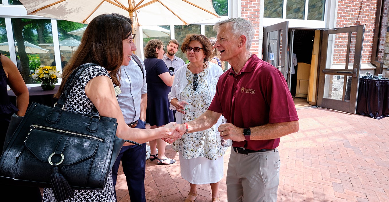 On Wednesday, July 17, more than 500 members of the University of Denver community gathered in the Fritz Knoebel School of Hospitality Management to welcome the University's 19th chancellor, Jeremy Haefner. Haefner mingled with the crowd before sharing his excitement at becoming part of DU's enduring legacy.
