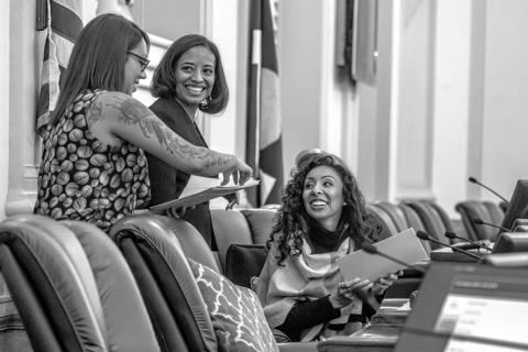 “Typical politicians are groomed for positions of power,” says Calderón (MLS ’01). “For women, that’s not our trajectory. We look at the needs of our communities and our families.”