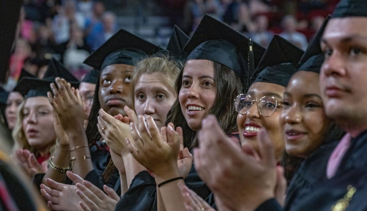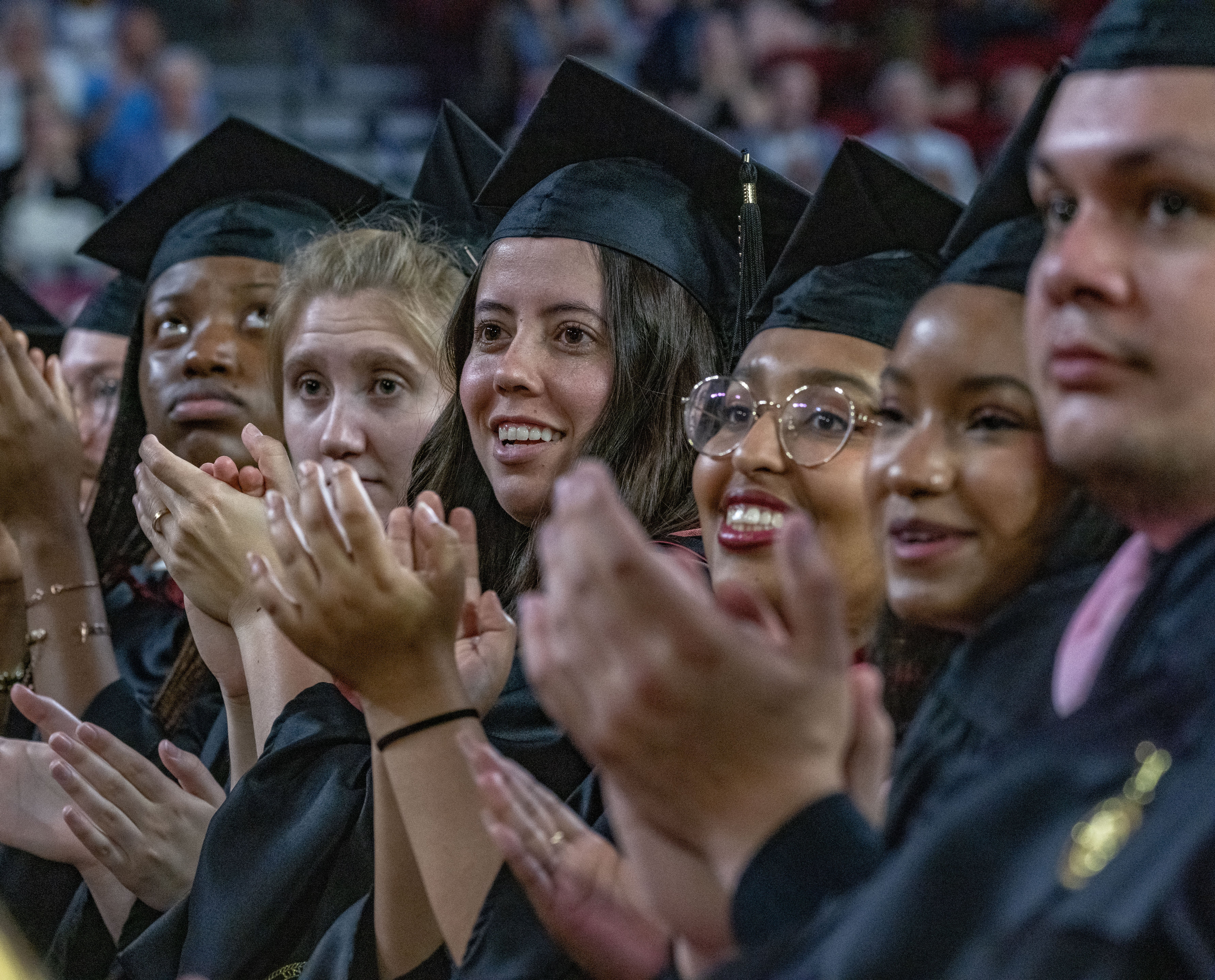 Those are the words that University of Denver Chancellor Jeremy Haefner asked students to reflect on at the spring 2023 graduate commencement ceremony on June 9. On the warm, sunny Friday in Denver, more than 500 graduate and doctoral students gathered in Magness Arena to celebrate the conferring of their degrees. In total, more than 2,400 graduate and doctoral students will receive their degrees this spring.