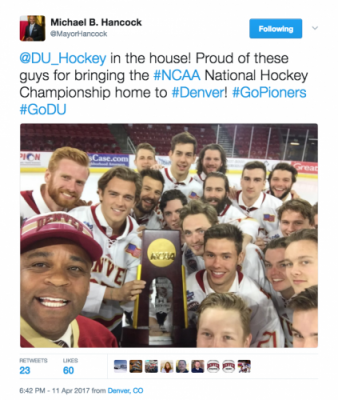 Denver Mayor Michael Hancock delivering that message to the University of Denver hockey team on Tuesday night as the community came together to celebrate a national championship. Approximately 3,000 fans came out to Magness Arena to congratulate the Pioneers for defeating Minnesota-Duluth 3-2 on Saturday night.
