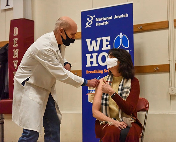 Once the pandemic hit though, a new relationship began to blossom. In July 2020, National Jewish became DU’s strategic health partner, helping to organize COVID testing on campus and later, vaccination events. Now this partnership has created a new opportunity, supporting cross-disciplinary research between the two.