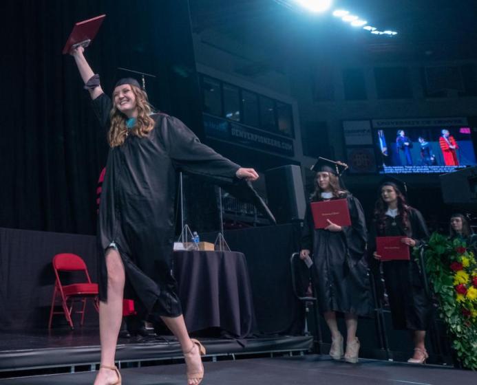This week the University of Denver celebrated more than 3,000 graduates in more than a dozen Commencement ceremonies over four days. The occasion brought families and friends to Magness Arena at the Ritchie Center for Sports & Wellness to watch their graduate walk across the stage and start the next chapter of their lives.