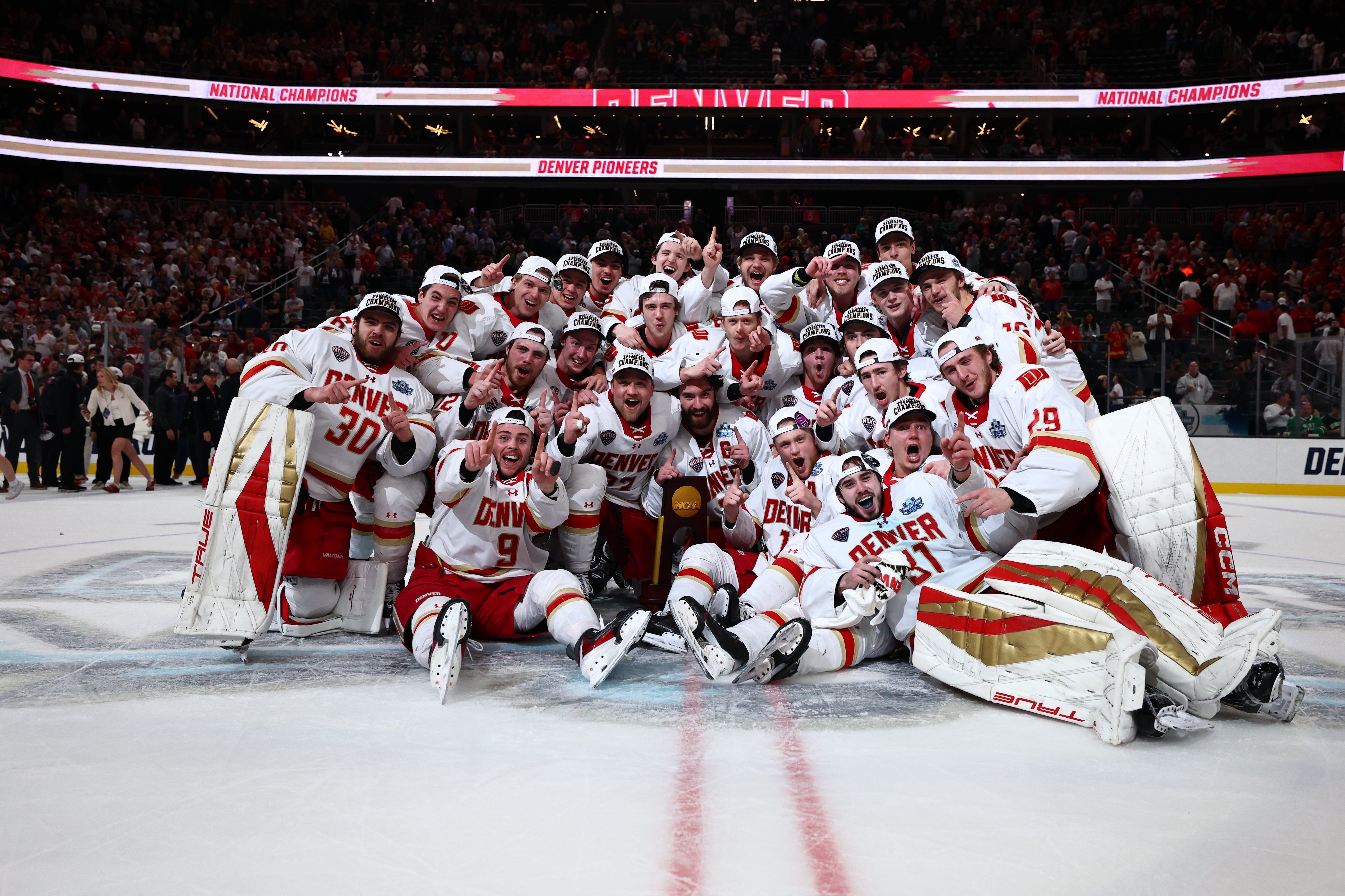 The goal injected new life into the Pioneers, and Kyle Chyzowski tipped in Boston Buckberger’s slapshot with 5:52 remaining to lift the Pioneers to their 11th national championship in program history.