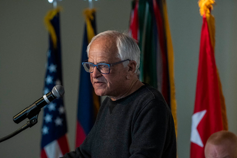 Fogel played a key role in bringing the statute to fruition. A longtime DU supporter, Fogel is the author of “Major General Maurice Rose, The Most Decorated Battle Tank Commander in U.S. Military History,” published in 2018. He has donated his voluminous research on Rose, who became the Army’s highest-ranking Jewish officer in World War II, to DU’s Beck Archives, a part of the Center for Judaic Studies.
