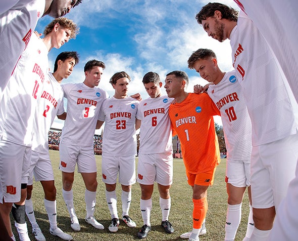 A chance to reach the first College Cup final appearance in program history slipped away from the University of Denver men’s soccer team as Vermont netted a late goal and—after two scoreless overtime periods—put away the game 4-3 on penalty kicks following a 1-1 draw in regulation.