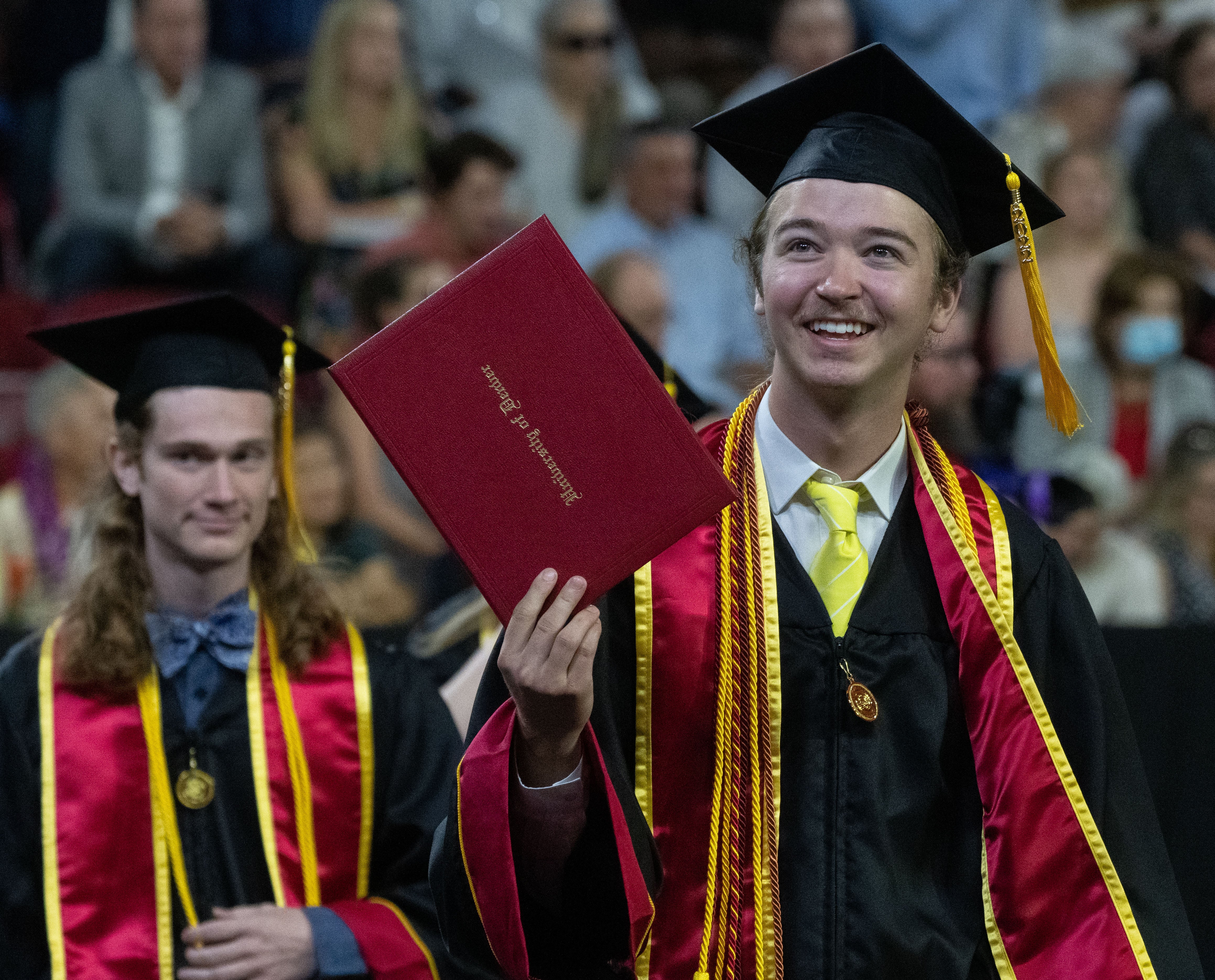 Two undergraduate graduates of DU at the 2022 commencement ceremony.