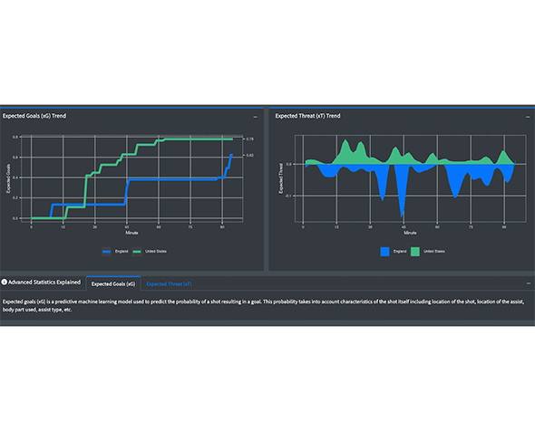 In the meantime, First Team launched a World Cup-focused dashboard that gives users a peek into the company’s proprietary analytics offering. The app provided detailed match reports for every World Cup result, showing the highs and lows of each game in the expected threat trend chart.