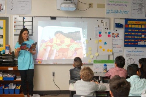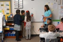 At an elementary school in Denver’s Ruby Hill neighborhood, several DU students are helping schoolchildren build positive social skills that counteract bullying behaviors. Both groups of students — the little kids and the big kids — are having a lot of fun in the process — with stories, songs and laughter.