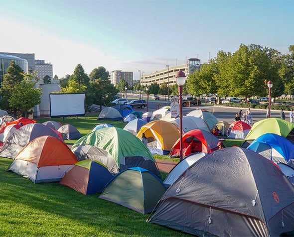 “It really is cool to see, especially for our players to see, the support that the student body gives them,” says head coach David Carle. “It’s a cool experience for the students … to camp out on campus and then win free tickets to our home games.”