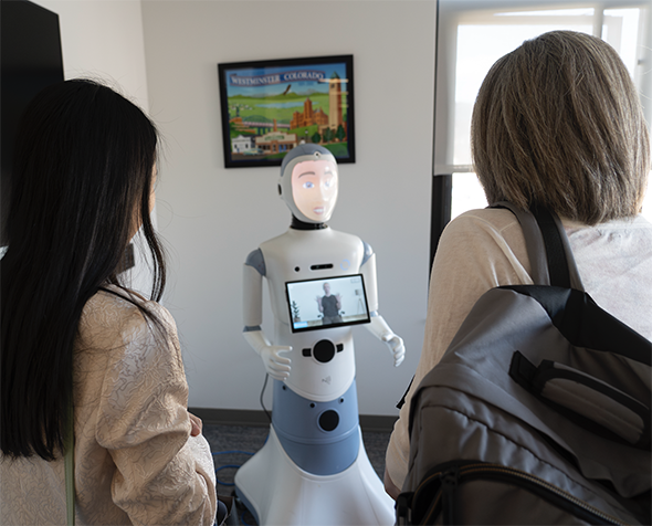 The first-of-its-kind AI-Try-A-Thon, held on April 5, offered members of the DU community a chance to learn about and try out a wide range of artificial intelligence tools, from chatbots and marketing tools to image generators and DU’s own social companion robot, while learning about and reflecting on the current and future implications of the widespread use of AI.