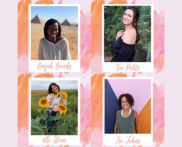 Project Like A Girl brings together a team from all corners of campus. Johns is finishing her undergraduate degree in anthropology and starting her master’s degree classes in international studies. Lillian Stone is a graduating English major with a minor in legal studies. Dajah Brooks is a senior focusing in marketing and minoring in analytics. And Tia Polite is in her third year at DU, studying hospitality management and business. All of them are earning a leadership minor through the Pioneer Leadership Program.