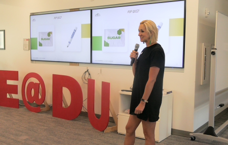 Highlights from BASE Camp 2024 included on-site visits to alumni-owned businesses, Mountain Crust Pizza and Bruz Beers, and workshops and classes led by a variety of alumni, faculty and entrepreneurs. BASE campers worked with faculty mentors from the Daniels College of Business and the Department of Media, Film and Journalism Studies and heard presentations from alumni entrepreneurs including Kevin Materi of FeelingHealth, John Winsor of Open Talent and Chennelle Diong of GoodLove Foods.