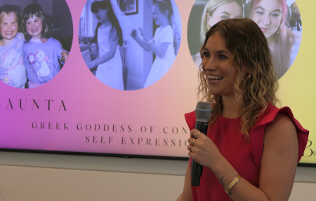 Named after the Greek goddess of confidence, media studies student MK Barlow’s startup, Flauntabra, is making customizable, asymmetric bras that provide a perfect fit for all. Based on conversations with friends, Barlow noticed a lack of options for asymmetric bras on the market and spent her summer developing prototypes and diving deep into market research.