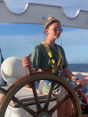 At the beginning of the fall 2019 quarter, DeWitt departed for the SEA Semester campus in Woods Hole, Massachusetts, where she was the only DU student in a group of 26. They spent the next four weeks preparing for their time on the SSV Robert C. Seamans, a tall ship research vessel, where they took classes in anthropology, oceanography and nautical science. Each class was tied to a research project that would be executed during the coming journey. DeWitt, who is majoring in ecology and minoring in astrophysics and gender & women's studies, focused her work on the shark population around Fiji, women and gender roles throughout their stops at sea, and how local communities treat their waste in the kingdom of Tonga.