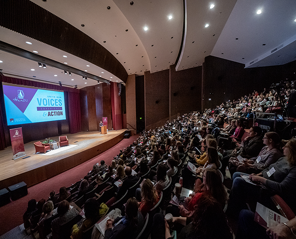 The daylong event, which coincided this year with International Women's Day, featured workshops that addressed timely and relevant topics unfolding in the community and around the world. Two keynote addresses were delivered, one by Elaine Welteroth, former editor-in-chief of Teen Vogue, and one by Jensine Larsen, founder of World Pulse, a digital network connecting women in 190 countries.