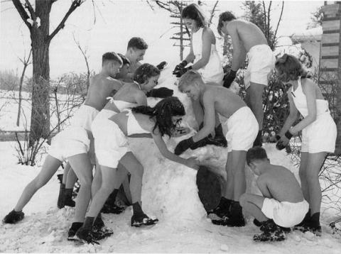 The exhibit also showcases dozens of photographs chronicling the treatment regimens offered patients and the services provided their family members. In one image, a number of scantily clad children are shown building an igloo at a “preventorium” administered by National Jewish. Preventoria were facilities designed for uninfected children whose parents were TB patients or for patients who did not yet have an active form of the disease but who needed to be isolated from the general population.