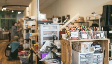 ReCreative is a community art center and reused art supply store, located within Denver’s Santa Fe Art District, a quick 15-minute drive from DU.
