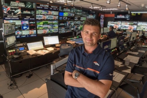 While the eyes of more than 75,000 fans are on the field during a Denver Broncos home game, their ears are paying attention to the man behind the curtain. University of Denver alumnus and Colorado native Conor McGahey (BA ’07) just completed his first season as the Broncos public-address announcer.