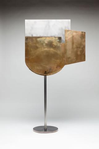 Consisting of 56 works, the show features Locketz creations from the 1950s through the 1980s, ranging from paintings, collage and sculpture to jewelry and clothing. As he worked to put the show together, Herron says, he was intrigued both by the wide range of styles in which the artist worked and by the marked shifts in materials that occur in her work over time. The abstract paintings Locketz created in the early ’60s are replaced in the middle of the decade by collages made of metal and wood; those are later supplanted by more sleek, flat metal sculptures and then, in the early ’70s, by colorful acrylic works.