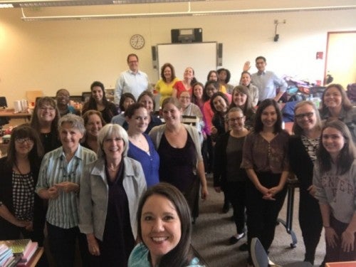 Kari Shafenberg (center, wearing black) stands with other volunteers helping with the Mother's Day Basket Project. Shafenberg has kept the project going for more than 20 years.