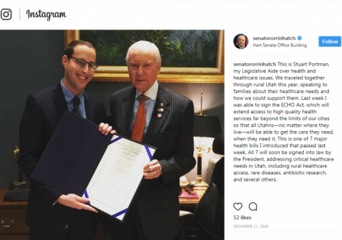 “I have a 'train harder' mentality,” says Portman, who has worked in Hatch’s office for nearly three years. “I do a lot of reading. I do as much learning as I can. I feel like I need to earn the title of being a Medicaid expert so people will believe what I have to say, especially in a time that’s so political like this. It just means that I have to work a little harder.”