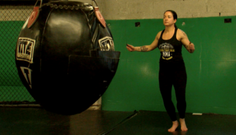 The protagonist: a petite, but powerful dynamo, her feet bouncing off the mat as if it were a trampoline. She beats up on a punching bag that’s as tall as she is and probably twice as wide.