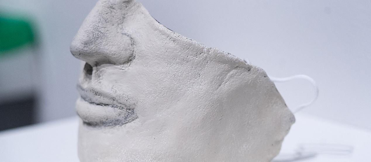 “The mask is a form of outward expression, like our clothing or how we choose to represent ourselves,” Shamos says, “but it’s specifically masking our prime tool for interfacing with the world. So there’s this really interesting push and pull between unique identity that comes through and the inability to read anyone’s expression. It becomes this second layer that’s doing your communicating for you in a different way.”