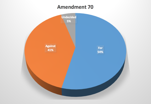 An amendment to the Colorado Constitution calling for an increase in the state minimum wage appears to be on its way to passing, with 54 percent indicating they are in support of Amendment 70, which guarantees the minimum wage would increase to $12 an hour by the year 2020. In September, DU released a study that shows the impact of an increased minimum wage on Colorado.