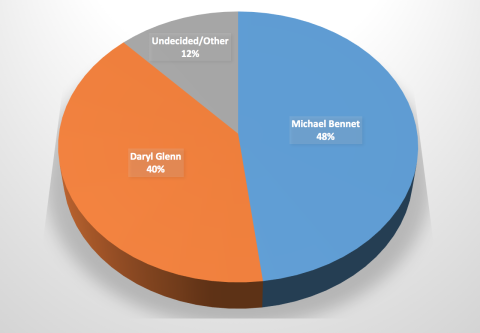 In the senate race, Democratic U.S. Sen. Michael Bennet holds an 8-point advantage over Republican challenger Daryl Glenn, 48 percent to 40 percent. The remaining 12 percent of those polled are either undecided or voted for another candidate.