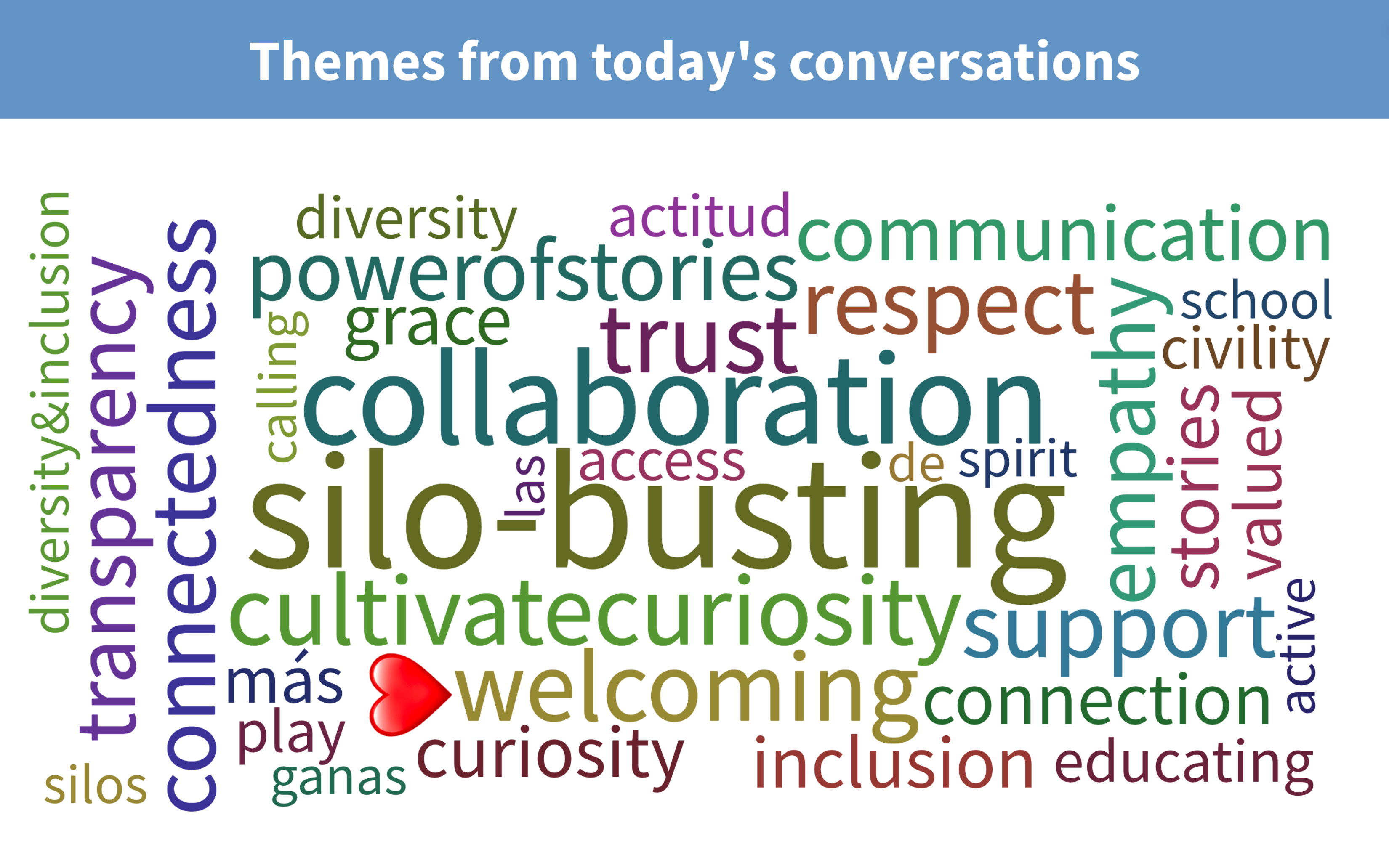 Attendees at the kickoff event got a taste of the conversations to come, working at individual tables to identify moments that foster a sense of belonging and actions that help people create the community they desire. The conversations inspired a word cloud that took shape in real time on the Jumbotron hovering over the arena. Among the themes captured in the moment were collaboration, empathy, trust and transparency.